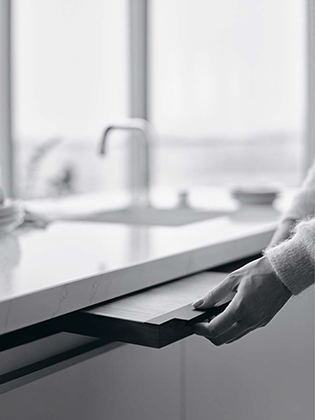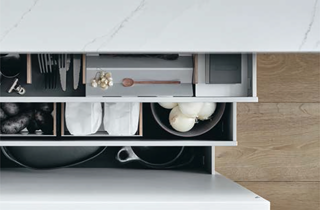 使用 +VENOVO系列,讓廚房空間得到了徹底重組。 垂直且分層的,而在平滑檯面的呈現上,可作為生活和烹飪之間的連接。