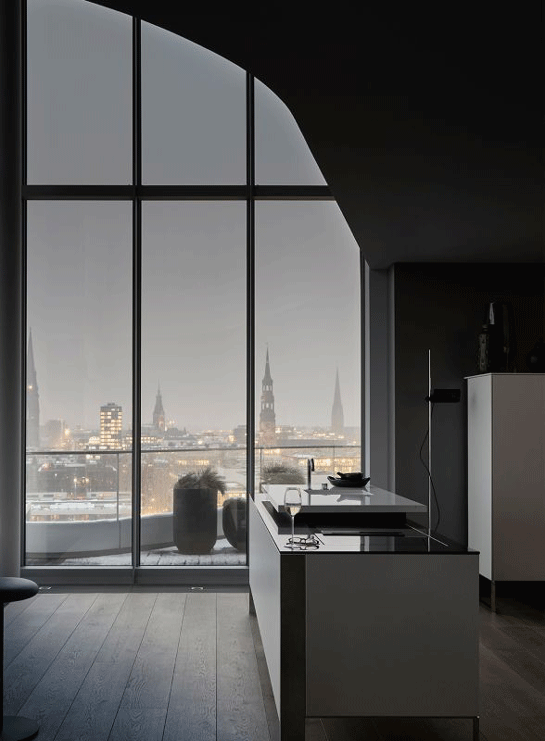 透過視覺上飄浮、無重力感的設計,消除廚房與其他家居區域的分野。