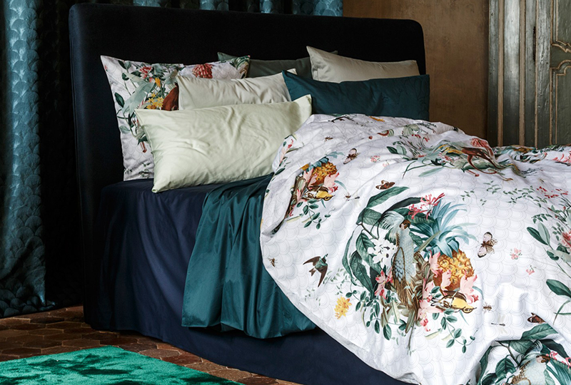 100%瑞士製造,特選長纖超過2公分的金埃及棉,以獨家手工印染技術和動物花草設計著稱、深具個人風格的寢具美感經驗。