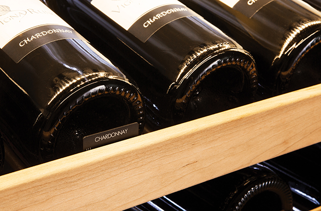 •層架可容納750 ml酒瓶與2夸脫大酒瓶。