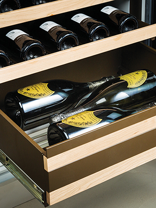 •層架設計可放置 750 ml 標準酒瓶,也可選購2夸脫大酒瓶酒架或小瓶裝甜酒架。
