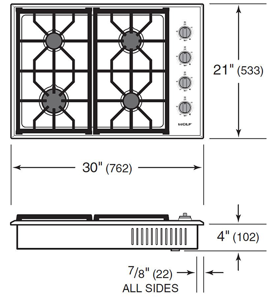 •標配 P 型紅色旋鈕(強烈的 Wolf 爐具識別)