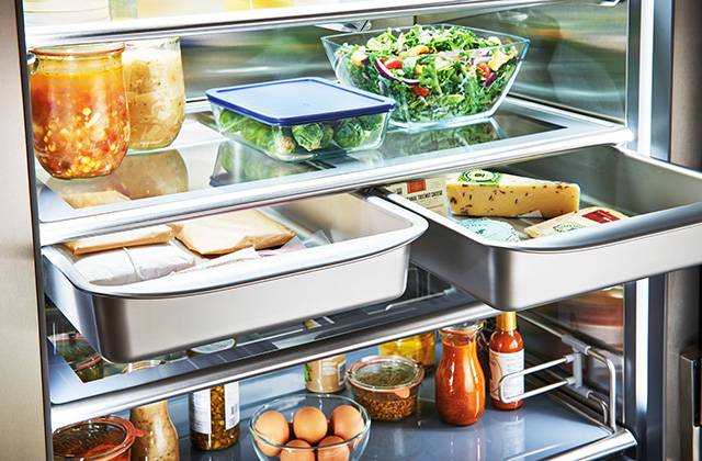 • 保鮮抽屜與熟食抽屜形成一個非常適合蔬果與肉類保存的低溫空間。