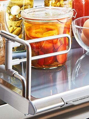 •冷藏儲存抽屜配備有緩衝滑軌系統。