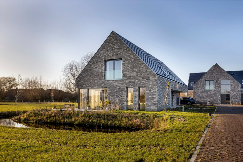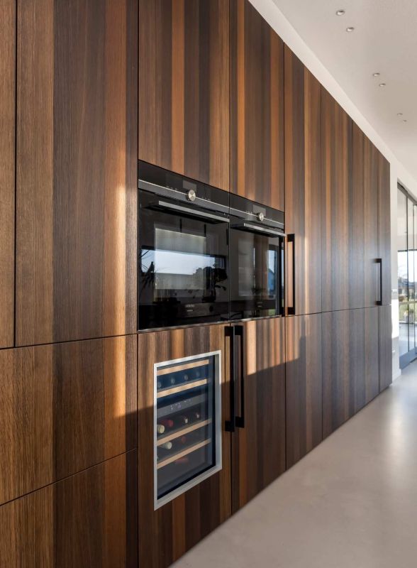 矗立於小溪、藍天、綠地的獨棟別墅擁有絕佳的田野景色,大面積的落地窗將景緻、陽光帶入室內。而位於房屋中心的Poggenpohl中島廚房 +MODO系列則以乾淨俐落的線條、自然材質的結合與周圍自然美景融為一體。
