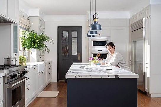 作為一位獲獎無數的藝術家,Lea非常重視卓越品質,她自然而然地選擇了美國名人最愛的品牌Sub-Zero&Wolf,這些頂級廚電為她的廚房空間增添了耀眼的光彩。她選用Sub-Zero嵌入式雙門對開冰箱,獨特的不銹鋼外觀在廚房一側閃閃發光,她的Wolf嵌入式蒸汽對流烤箱及微波爐則無縫融入櫥櫃中,而米其林廚師首選的Wolf經典爐連烤則安排在廚房空間的核心位置,完美呼應了Lea對於廚房最初的設想。