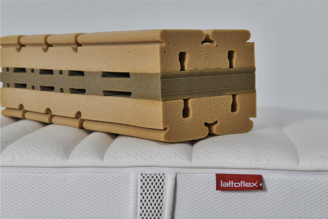 改寫人類睡眠歷史的德國Lattoflex飛翼床,由飛翼床架和冷膠床墊構成。 床底架上獨創的飛翼系統(Winx)採用特殊點狀支撐設計,由數組懸臂及托點構成的單元為基礎,每個托點都能根據其承載的人體重量與移動時造成的不同壓力而獨立變形,無論人體如何躺臥翻滾,都能得到飛翼全然的撐托,榮獲最具權威性的德國健康脊背協會(AGR)脊椎健康商品認證,是睡眠系統最高品質要求。 獨家專利床蕊則由多種不同硬度的冷膠組成,以卡榫狀彼此嵌合,龍骨式的銜接設計不僅能因應人體不同部位調整支撐力,還能迅速排出汗液及熱氣,潔淨衛生,使睡眠更舒適,其材質榮獲全球Oeko-Tex® Standard 100 環保健康無毒檢測標章認證。